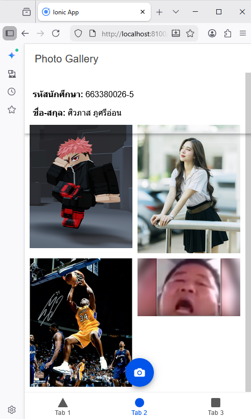แอป Photo Gallery พัฒนาด้วย Ionic Vue สามารถถ่ายภาพหรือเลือกภาพจากเครื่อง แสดงผลเป็น Grid และบันทึกข้อมูลแบบถาวร