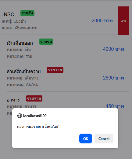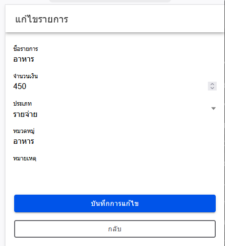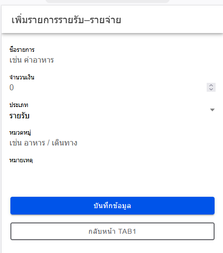 - เพิ่มรายการรายรับ–รายจ่าย