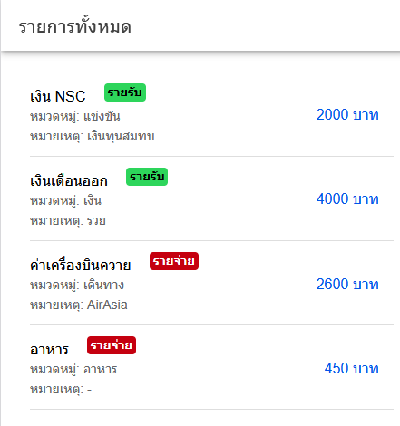 - แยกประเภท รายรับ / รายจ่าย